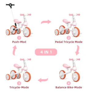 4 in 1 Toddler Tricycle with Push Handle in Pink – Kids Bikes