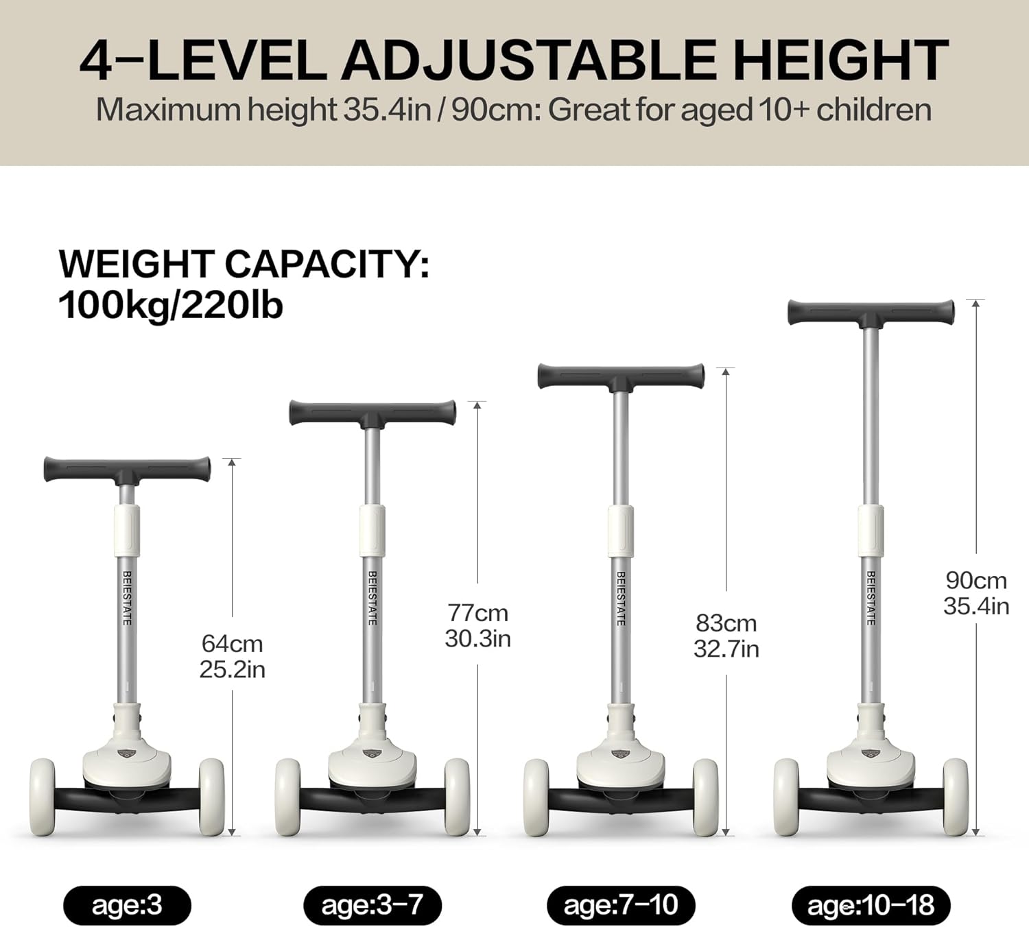 - Three Light-Up Wheels: The scooter features vibrant light-up wheels that illuminate as your child rides, adding a fun visual element and enhancing visibility.