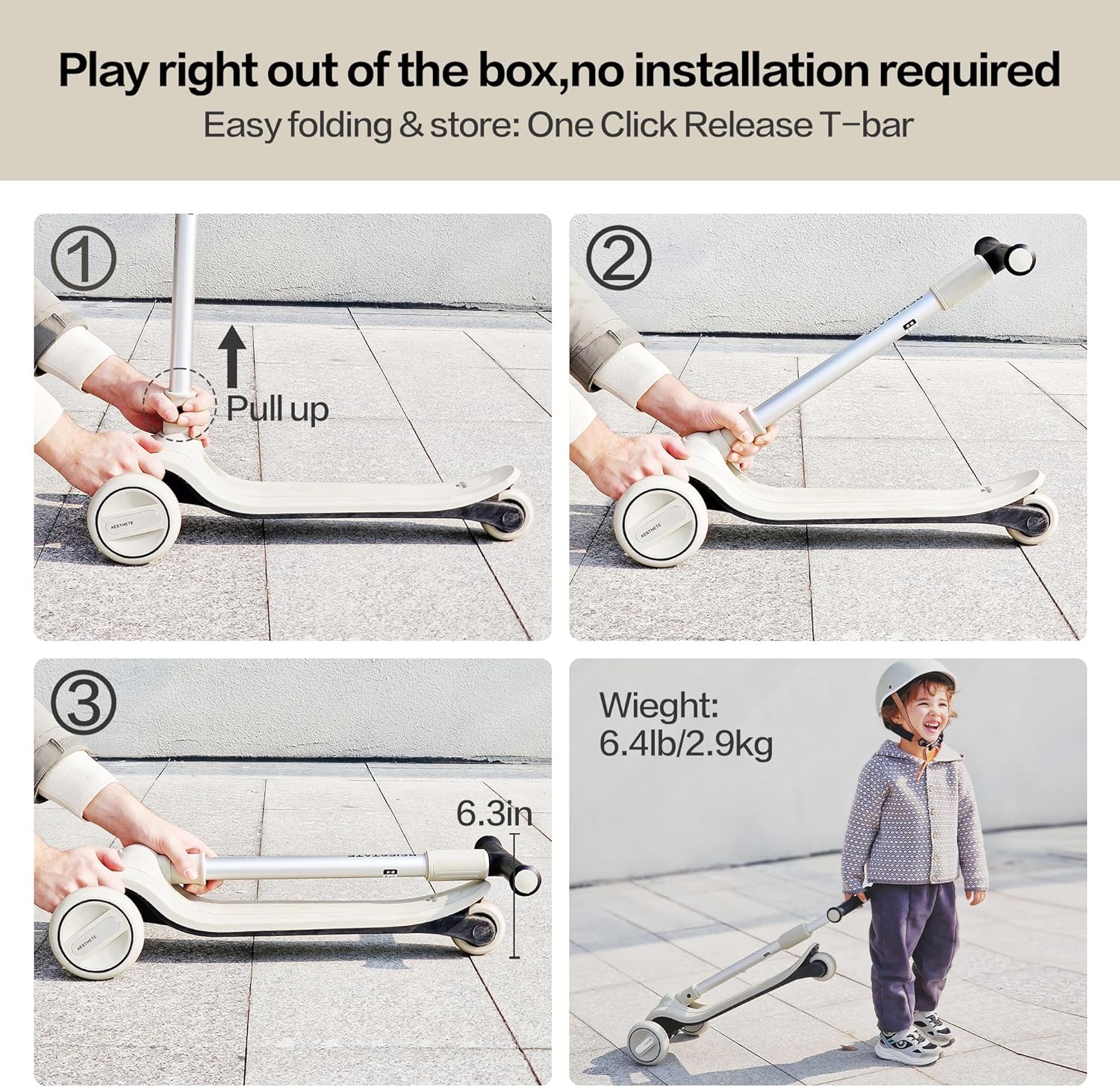 - Foldable Design: The scooter easily folds for convenient storage and portability, making it perfect for travel, school commutes, or park outings.
