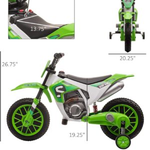 Aosom 12V Kids Motorcycle, Electric Motor Bike, Battery-Powered Ride-On Toy with Charging Battery, Training Wheels, Green