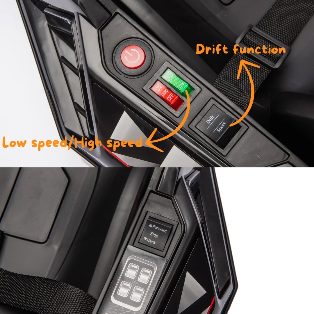 โซย 24V High-Torque Motorย โย 3 Speed Modesย (10/15/20 km/h) withย drift mode activation