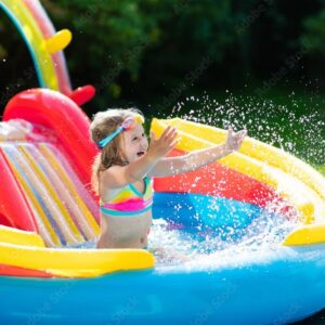 Inflatable UV Careful sunshade provides safe, shaded fun in the sun.