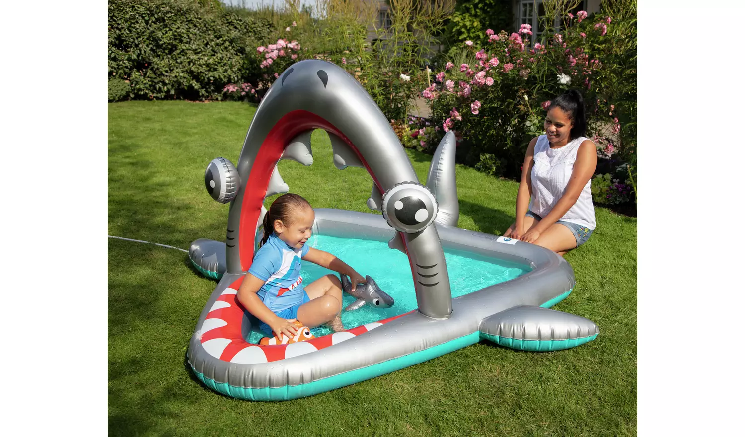 Take a bite out of the temperature with your very own, shark-inspired pool. Cool off and have fun too with this inflatable splashing and paddling pool which has a fun, shark design, and a built-in water sprayer which connects to a standard garden hose to keep your little ones cool.