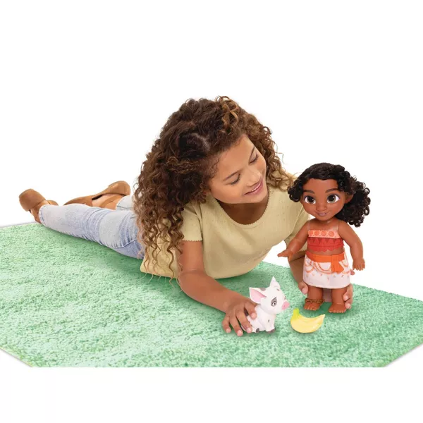Enjoy oceans of exciting story moments with Moana’s Little Sis Simea & Pua from Disney’s Moana 2. As adorable as she is full of fun, Moana’s little sister Simea is always ready to play. Little Sis Simea doll features her signature hairstyle and outfit just like in the film! And with Pua at her side, it’s a good thing that Simea comes with a bunch of bananas in case Pua gets hungry!