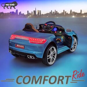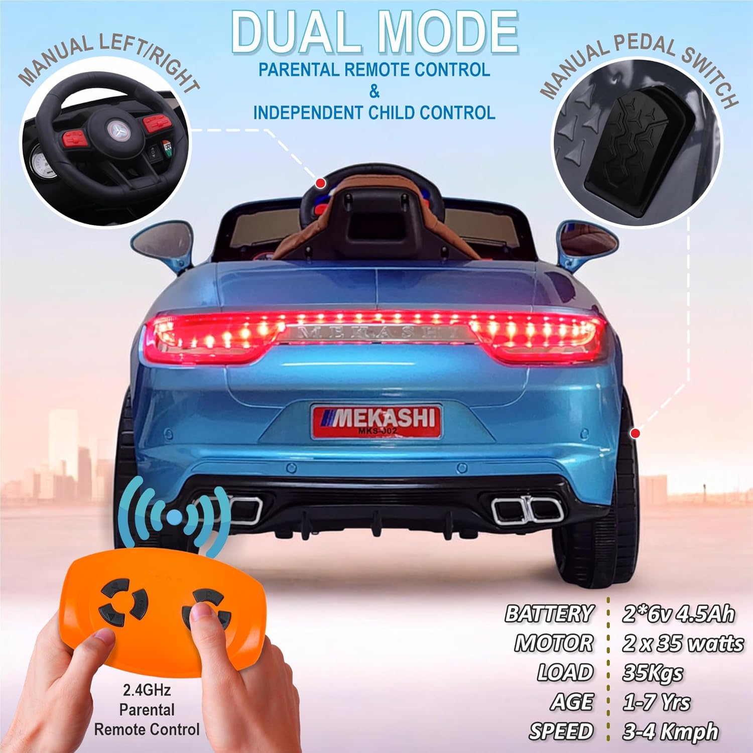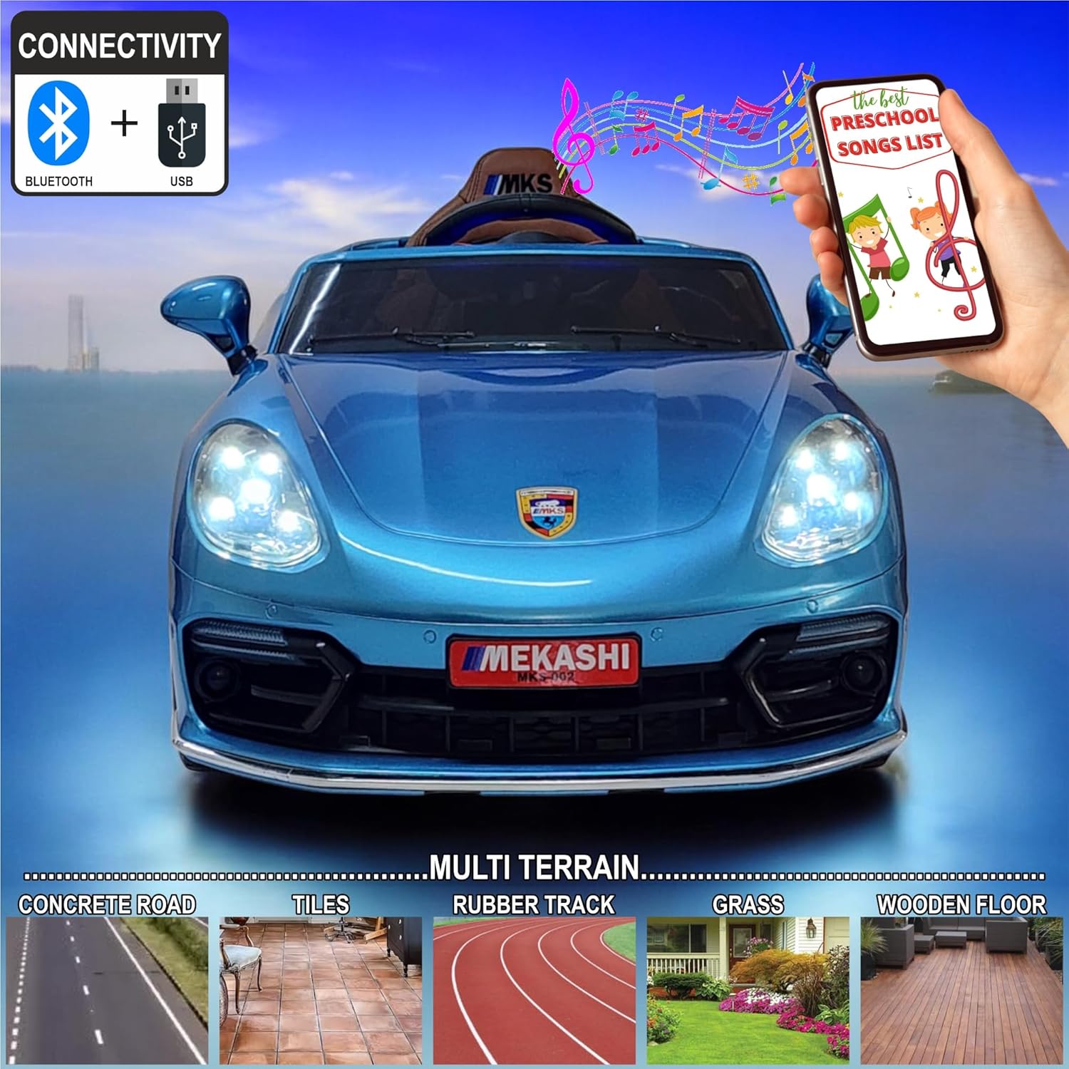 The MKS002D Electric Car for Kids is an exciting ride designed for children aged 1 to 7 years. With its metallic blue finish and a host of features, this car provides a safe and enjoyable driving experience for young adventurers.