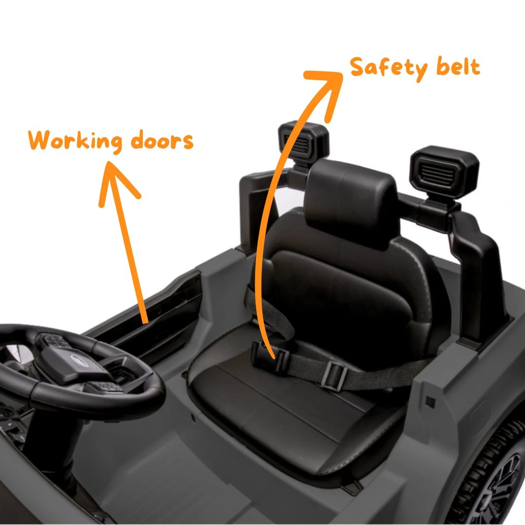The Ford Ranger Ride-On Electric Car in sleek grey is the perfect adventure vehicle for kids aged 3 to 7 years. This powerful electric ride-on combines rugged design with exciting features, providing young drivers with a thrilling experience as they explore their surroundings.