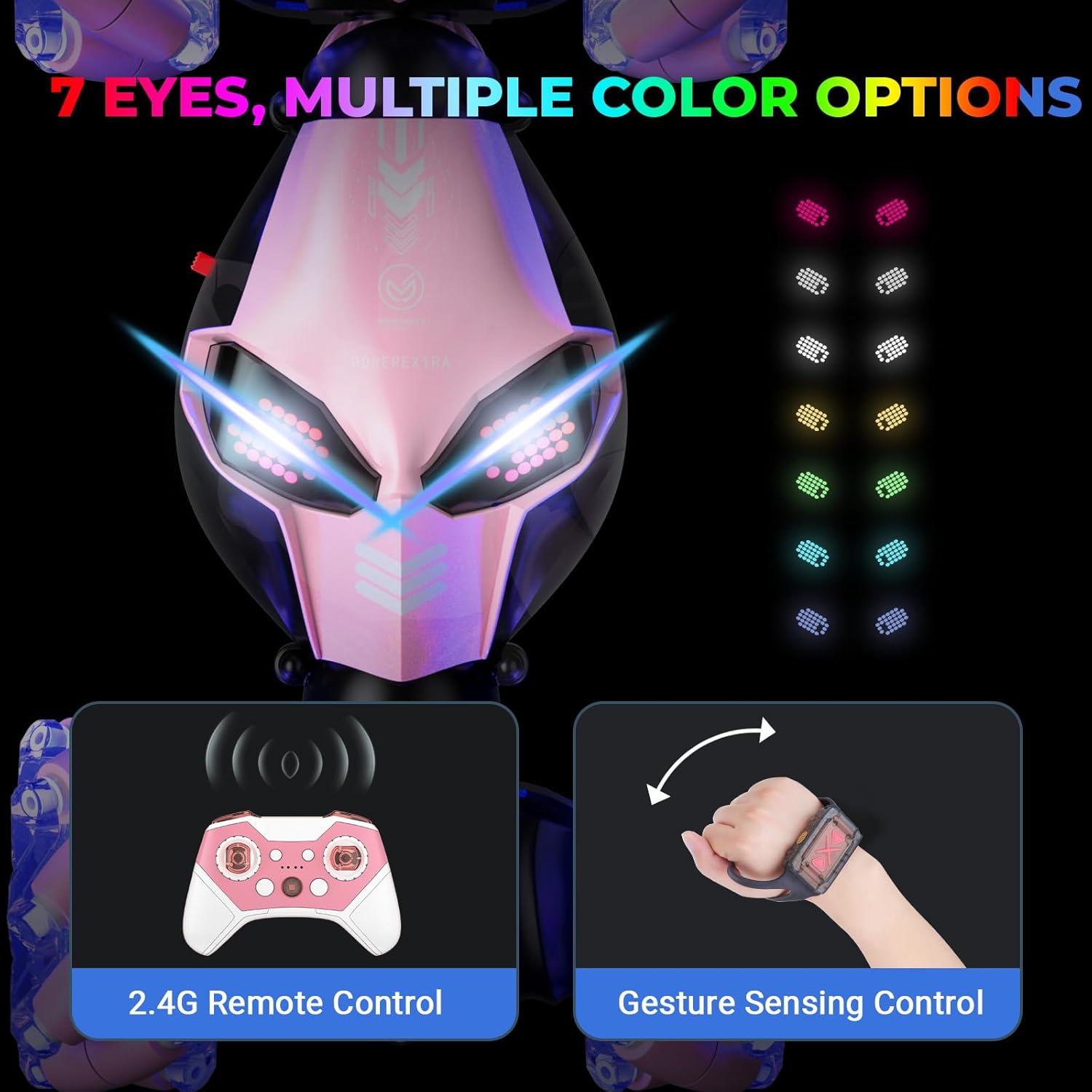 ✔ LED Light Show – Colorful eyes and underglow with pulsating effects
