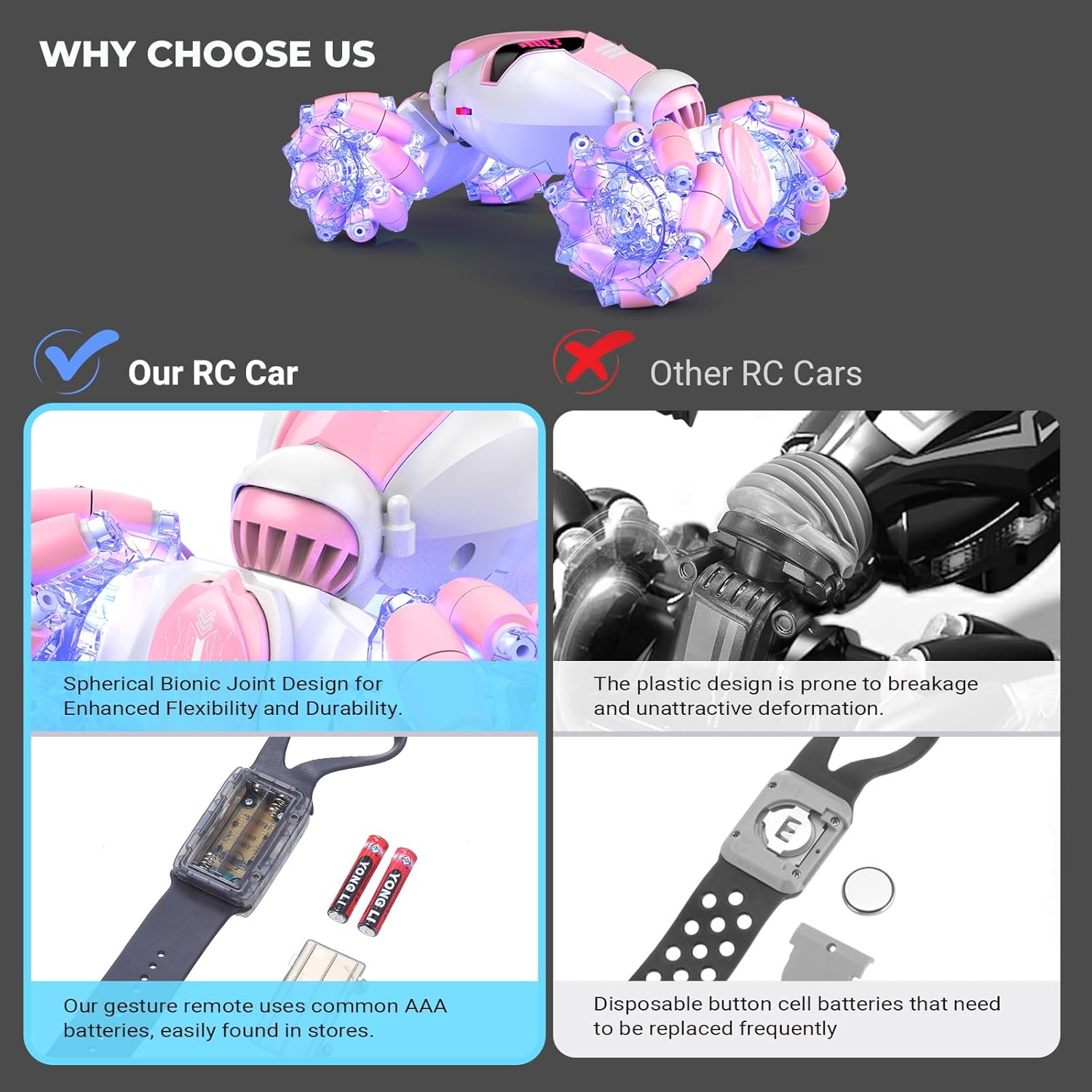 ✔ Smart Gesture Control – Simply tilt your hand to steer (2.4GHz remote also included)