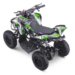 The Lads Green 49cc x-Race Petrol Auto Quad Bike is designed for children aged 5 to 8, offering a perfect entry into the world of off-road riding.