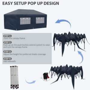 Outsunny 19′ x 10′ Pop Up Canopy with Sidewalls, Height Adjustable Large Party Tent with Leg Weight Bags – Blue