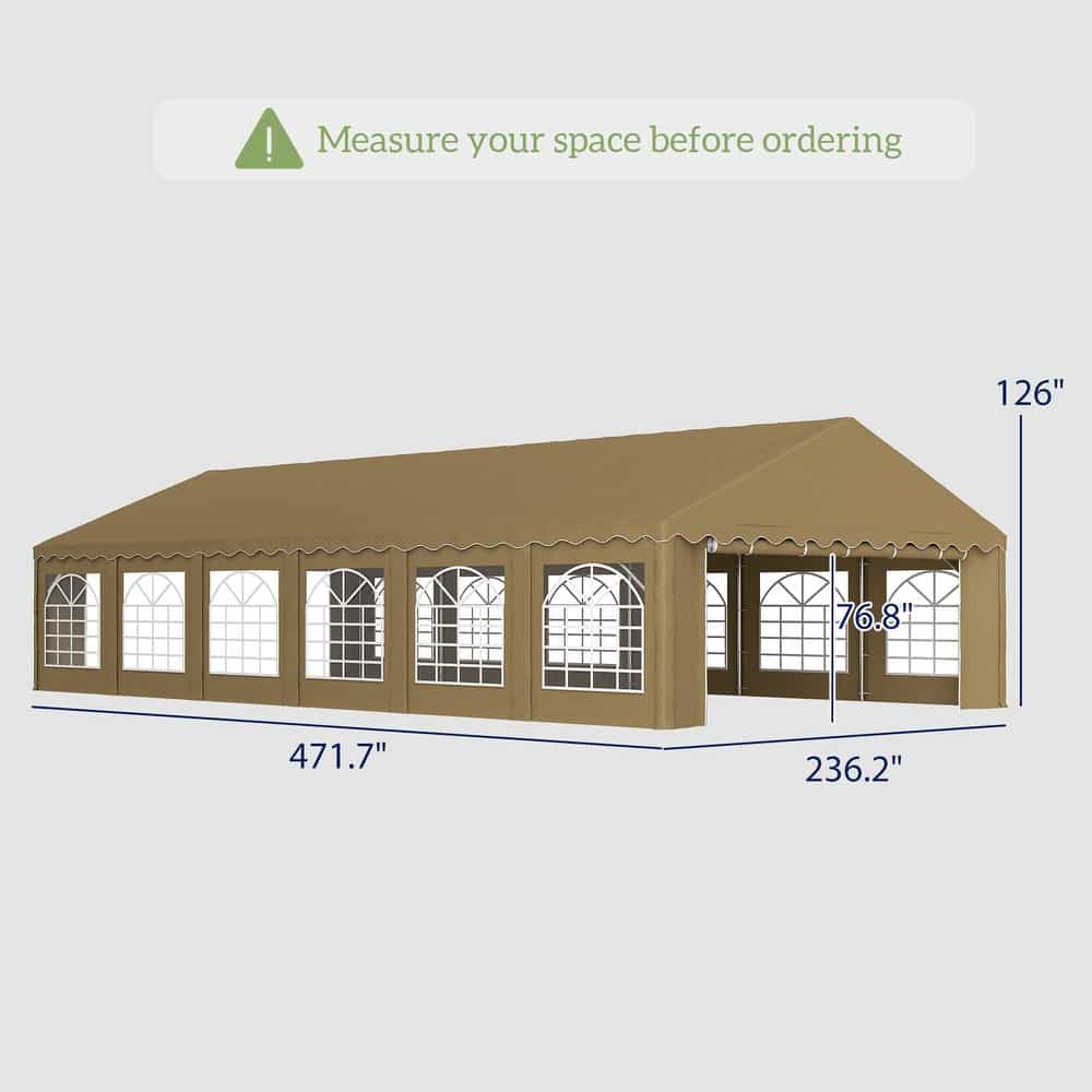 Outsunny 20′ x 40′ Heavy Duty Party Tent, Galvanized Outdoor Canopy Tent Large Event Shelter with Removable Sidewalls – Brown