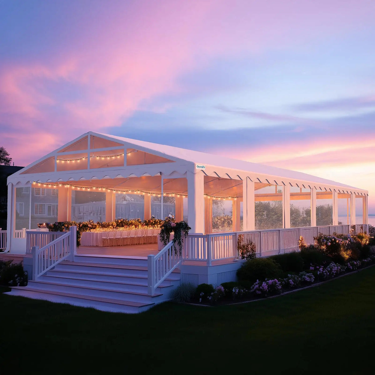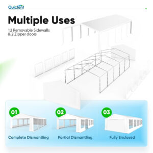 Create a stunning, weatherproof venueΒ with ourΒ 20′ x 40′ commercial-grade party tent, featuringΒ crystal-clear sidewallsΒ that let in natural light while protecting guests from the elements. Perfect for elegant weddings, upscale parties, and professional outdoor events.