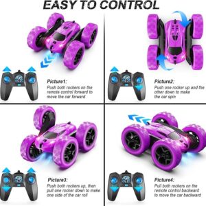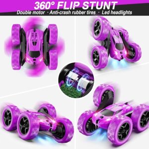 Purple RC Stunt Car for Girls – 360° Flips & LED Lights | 2.4GHz High-Speed Fun