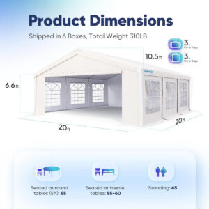 The Quictent Fire-Resistant White Party Tent is designed for safety and elegance, making it an excellent choice for outdoor events. Whether for a wedding, festival, or family gathering, this tent offers ample space and peace of mind.